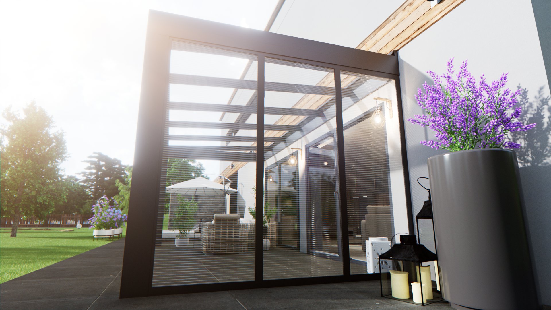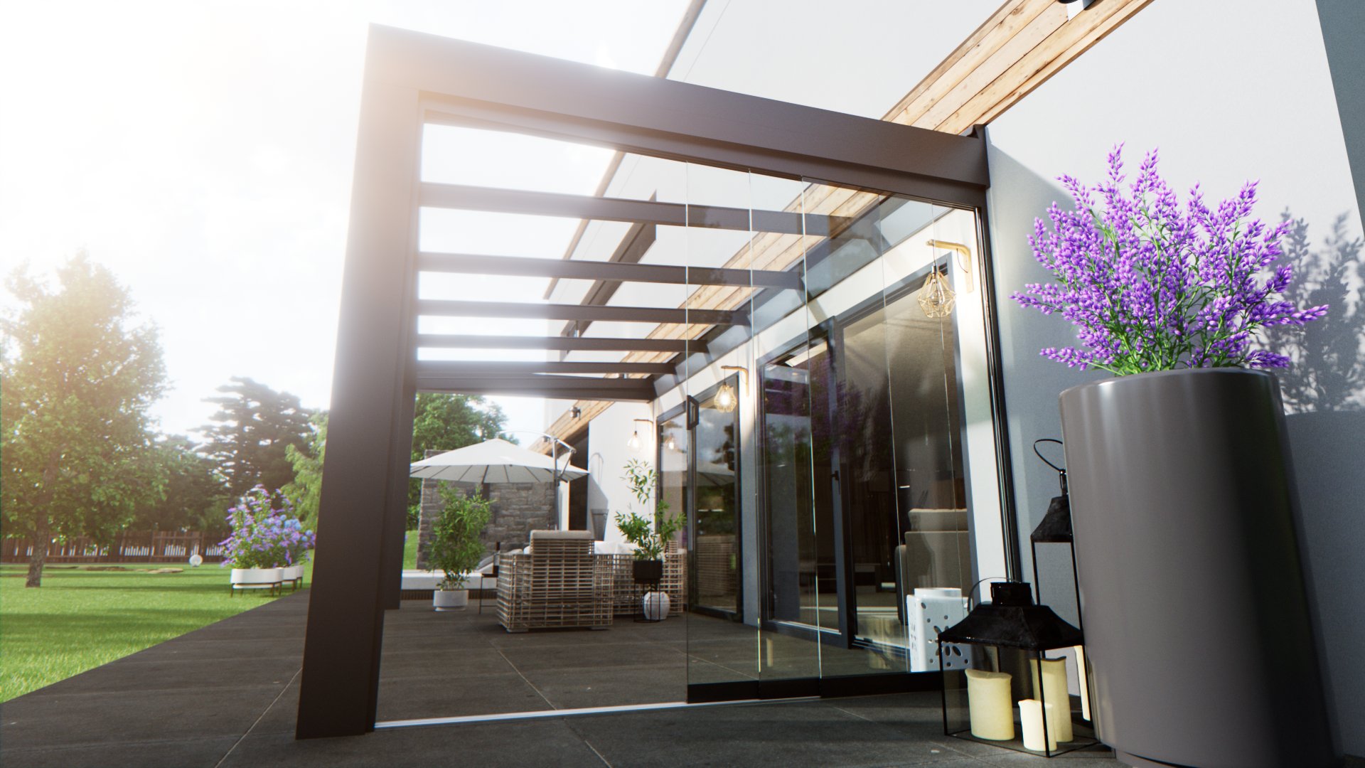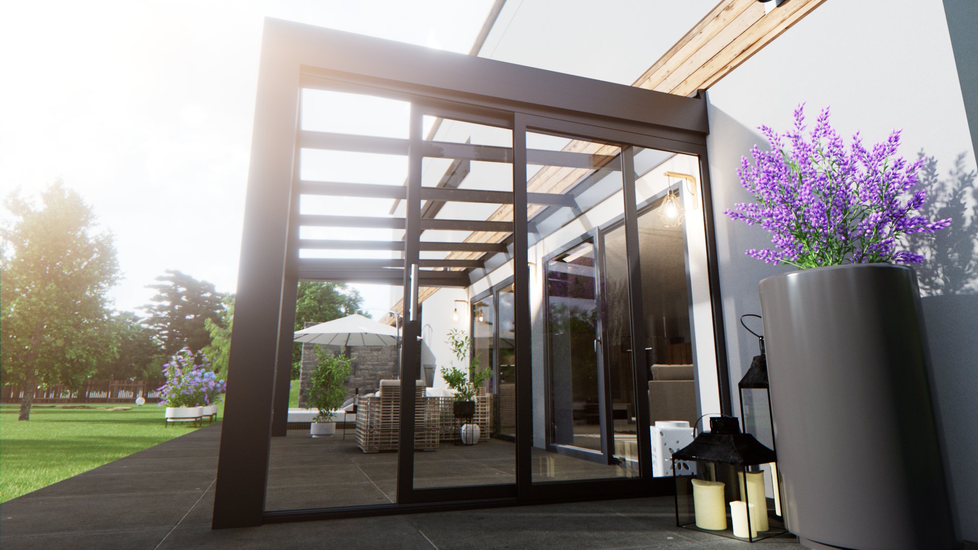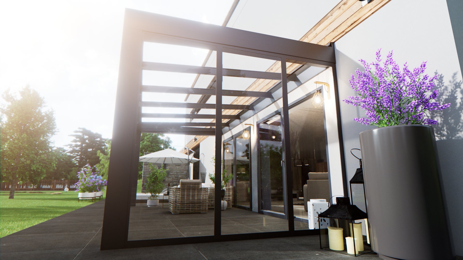 Lekka i wytrzymała konstrukcja, która chroni przed deszczem i słońcem, zapewniając przyjemne, jasne światło. Idealna do tarasów i ogrodów letnich.