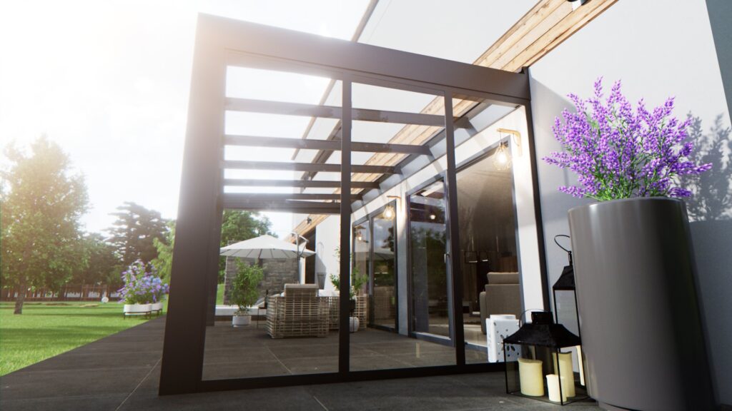 Nowoczesny system przesuwny bezramowy pozwala elegancko zamknąć lub otworzyć przestrzeń tarasu bez widocznych ram. Dzięki szklanym panelom zyskujesz pełną przejrzystość, naturalne światło i poczucie przestronności, jednocześnie chroniąc się przed wiatrem i deszczem. To funkcjonalne i estetyczne rozwiązanie, które doskonale komponuje się z każdym zadaszeniem.